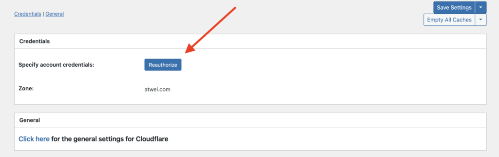 Po aktivaci se otevře možnost propojení s vaším Cloudflare účtem. V detailu rozšíření klikněte na Reauthorize.