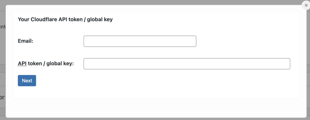 Plugin po vás bude chtít dvě věci: e-mail k Cloudflare účtu a API token nebo Global API Key.
